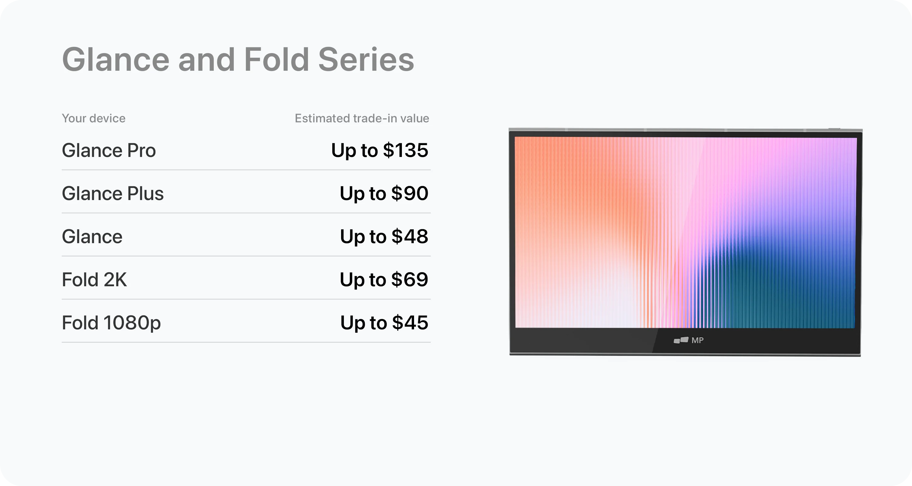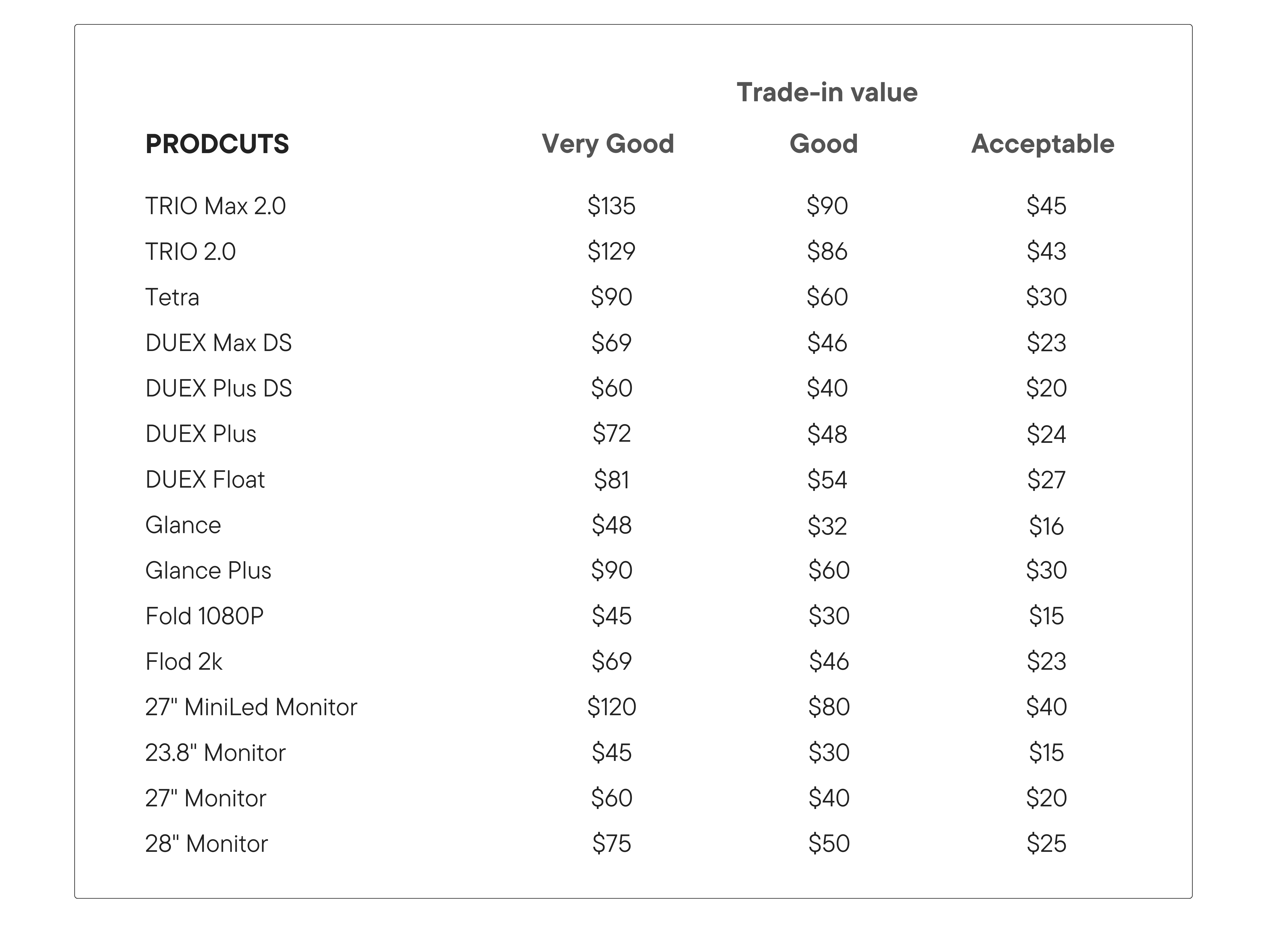 Only Mobile Pixels monitors with the trade-in option available on their product page are eligible. (excluding accessories and non-qualifying models).