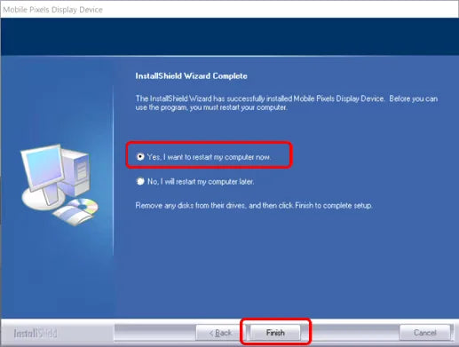 Please select “Yes, I want to restart my computer now” and click "Finish".