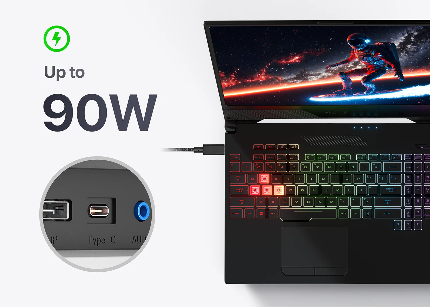 This monitor features a USB Type-C port with 90W charging to power your laptop, fast data, audio and video transfer speeds with just one single USB-C cable.