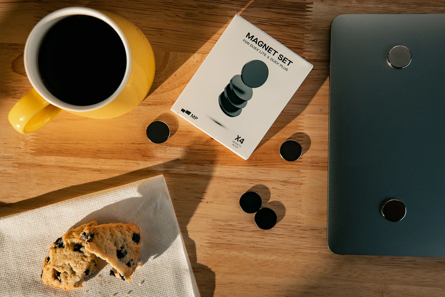 Keep your Mobile Pixels Duex and Trio monitors attached to your laptop with these Black Magnets. They're sturdy, but safe to use with your electronics. The magnets are 20 mm x 20 mm x 2 mm so they're small enough to travel with you.