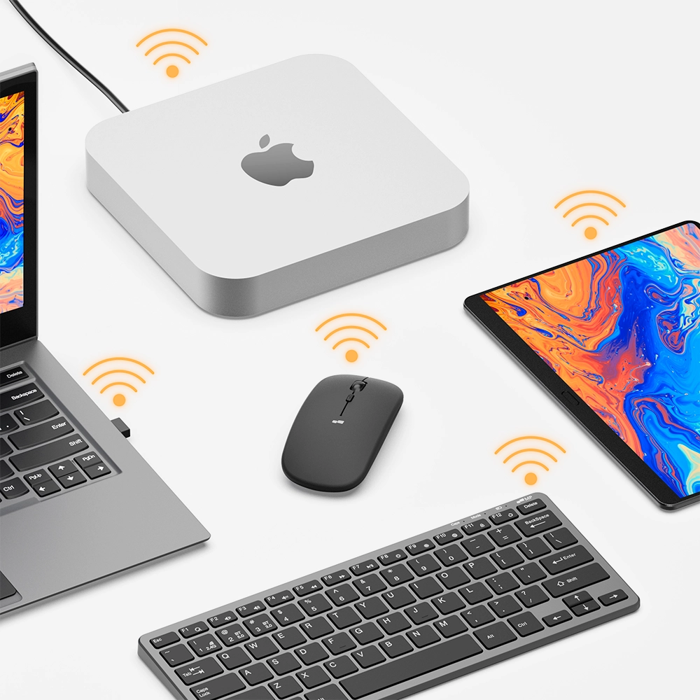 Confidently operate both keyboaed and mouse up to 32ft distance via bluetooth or advanced 2.4GHz wireless.