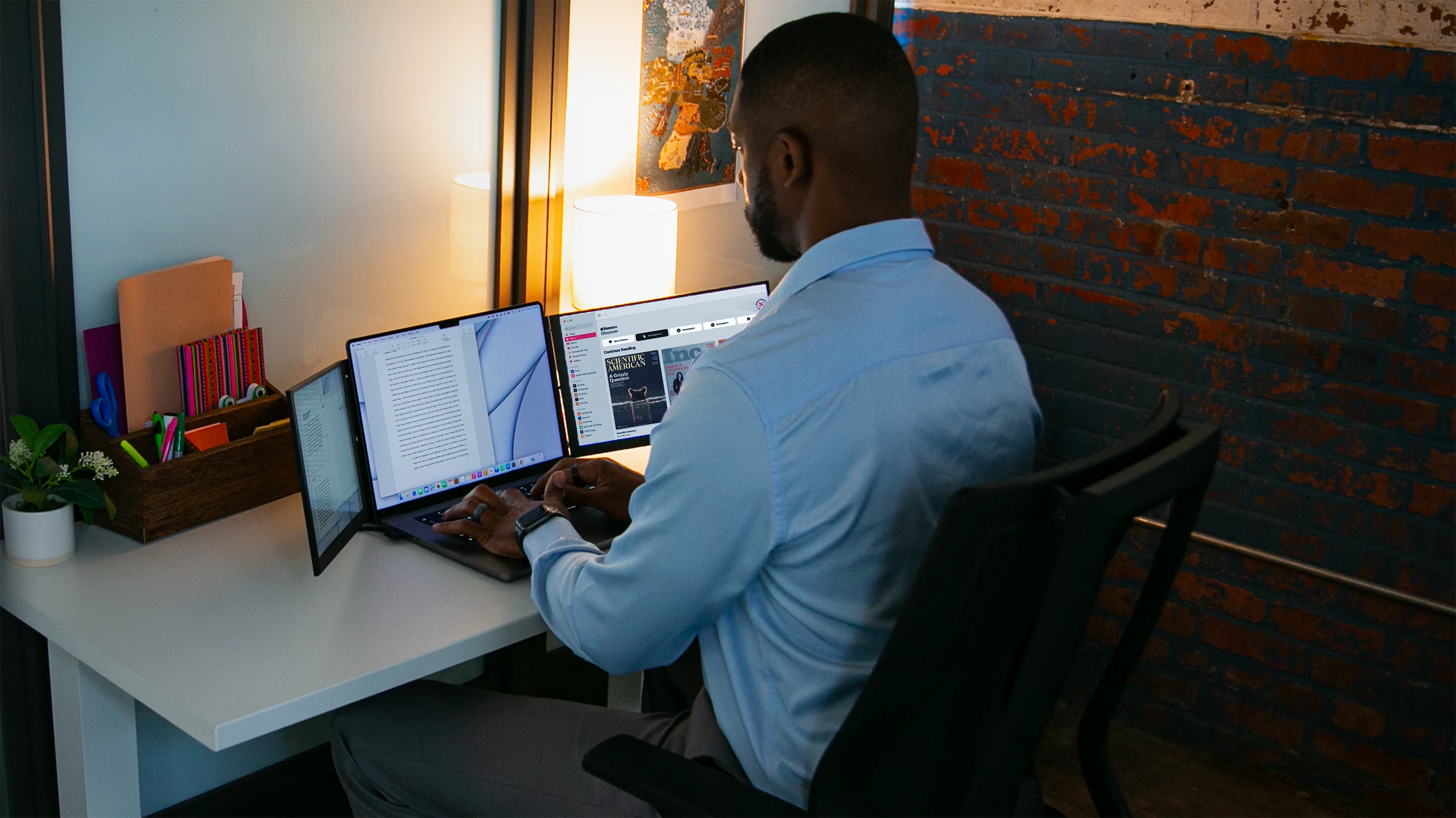 End your tab-switching nightmare with a pair of attachable, high-res screens to get more done, faster.